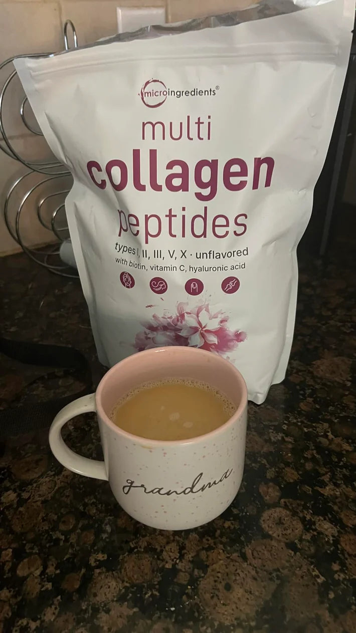 He probado numerosos tipos de colágeno para intentar ayudar con la caída de mi cabello causada por el uso de Mounjaro para mi diabetes tipo 2, sin tener NINGÚN resultado… hasta ahora. He estado tomando este colágeno multitipo junto con un multivitamínico durante unos 2 meses y ¡los resultados han sido increíbles! FINALMENTE tengo nuevo crecimiento de cabello, mi piel se ve y se siente mejor y mi dolor articular ha disminuido significativamente.Cada día, en una botella mezcladora, agrego 2 cucharadas de colágeno multitipo, una cucharada de Metamucil con sabor a naranja y agua fría… lo agito bien y listo. El colágeno tiene un olor un poco extraño, ¡pero no tiene sabor! Me encanta este producto. He probado numerosos tipos de colágeno para intentar ayudar con la caída de mi cabello causada por el uso de Mounjaro para mi diabetes tipo 2, sin tener NINGÚN resultado… hasta ahora. He estado tomando este colágeno multitipo junto con un multivitamínico durante unos 2 meses y ¡los resultados han sido increíbles! FINALMENTE tengo nuevo crecimiento de cabello, mi piel... He probado numerosos tipos de colágeno para intentar ayudar con la caída de mi cabello causada por el uso de Mounjaro para mi diabetes tipo 2, sin tener NINGÚN resultado… hasta ahora. He estado tomando este colágeno multitipo junto con un multivitamínico durante unos 2 meses y ¡los resultados han sido increíbles! FINALMENTE tengo nuevo crecimiento de cabello, mi piel se ve y se siente mejor y mi dolor articular ha disminuido significativamente.Cada día, en una botella mezcladora, agrego 2 cucharadas de colágeno multitipo, una cucharada de Metamucil con sabor a naranja y agua fría… lo agito bien y listo. El colágeno tiene un olor un poco extraño, ¡pero no tiene sabor! Me encanta este producto.